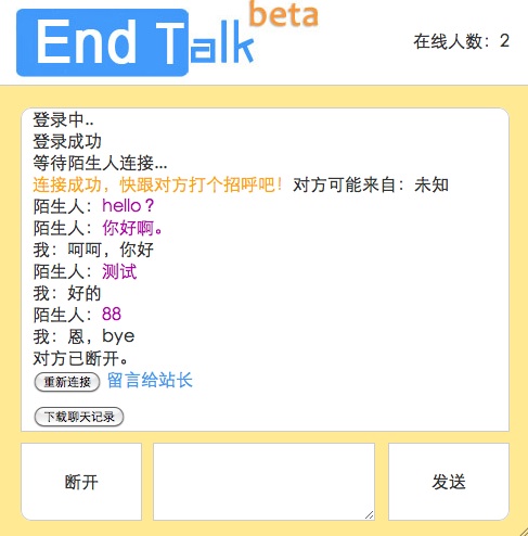 简介: EndTalk 是一个类似omegle.com的在线匿名聊天系统。