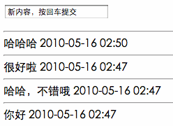 写了个微博程序。基本需求是:1.无乱码(最好UTF-8)。 2.有输入框可以发布新信息。3.提交后马上可以看到新发的内容。4.必须使用POST方式提交。5.信息后面要有时间标记。6.不能发布任何HTML标签。